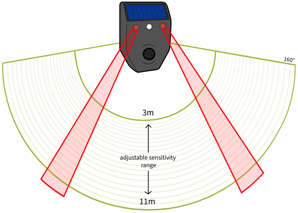 We designed the Critter Guard with every environment in mind. Utilizing a rugged and solar-powered design allows for portable and reliable placement, wherever you may need to keep wildlife away. The adjustable sensitivity and multiple light settings allow the user to customize their wildlife deterrent strategy with ease.