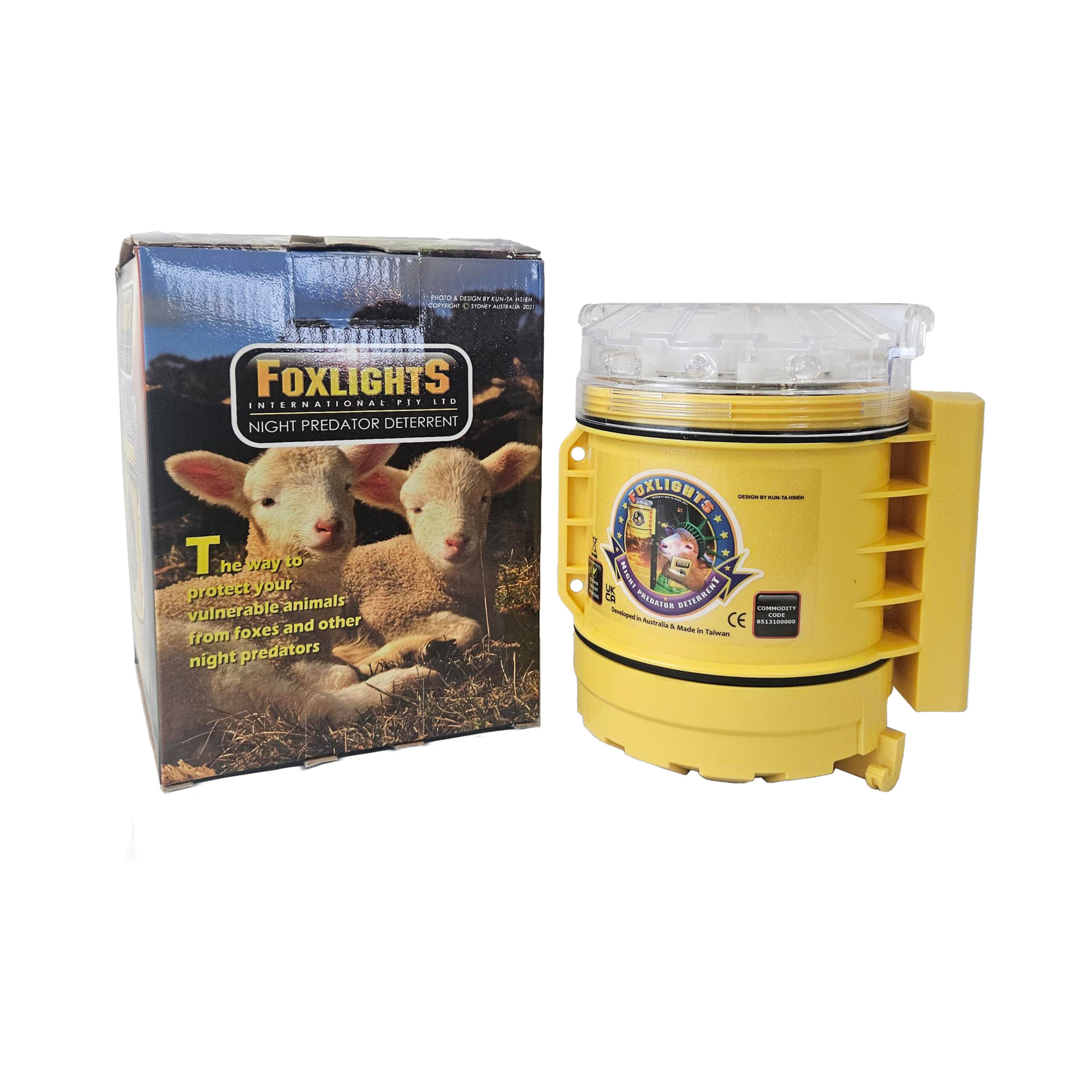 This weatherproof deterrent light is equipped with hooks and grooves for easy mounting on most fence posts as well as insulated openings to mount directly on electric fence wires.