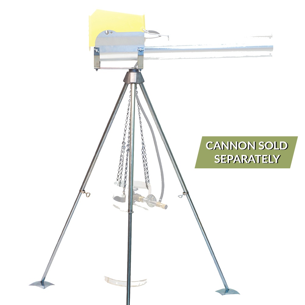 The Zon Mark IV Rotating Tripod raises and rotates cannons 4ft above the ground level projecting sound above your crops and other obstructions. The tripod legs are adjustable for placement on uneven and hilly ground. Each detonation pivots the cannon, allowing it to rotate 360°, protecting a larger area than stationary units.