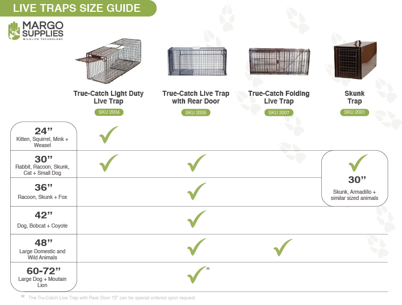 The first thing to consider when selecting a trap, is the size of the trap relative to the animal you are trying to capture. Traps come in assorted sizes, designed for diverse types of animals. Make sure to choose a trap that is appropriately sized for the specific wildlife, feral, or domestic animal you are targeting.